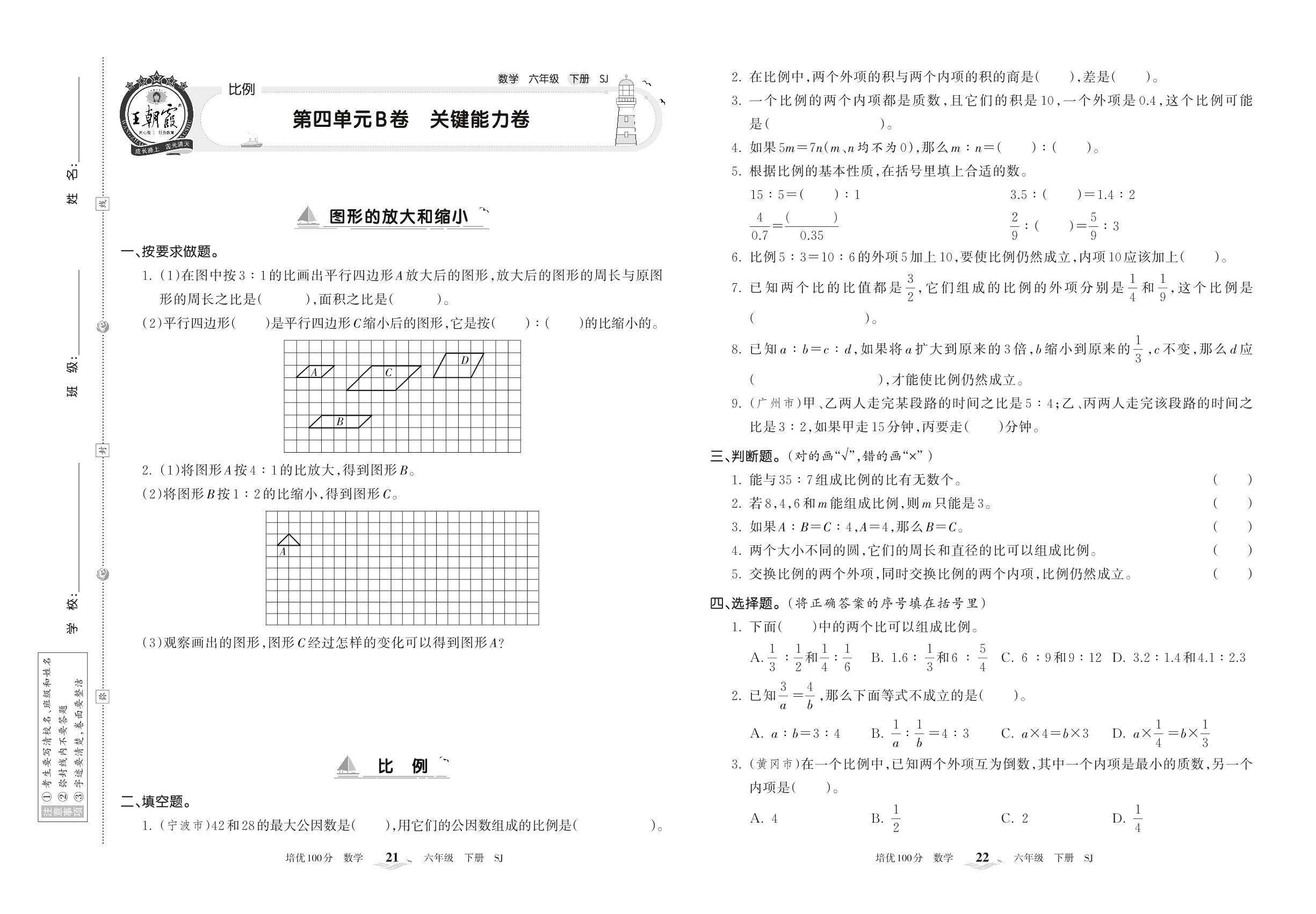2022下册六年级数学苏教版 第四单元B卷 关键能力卷