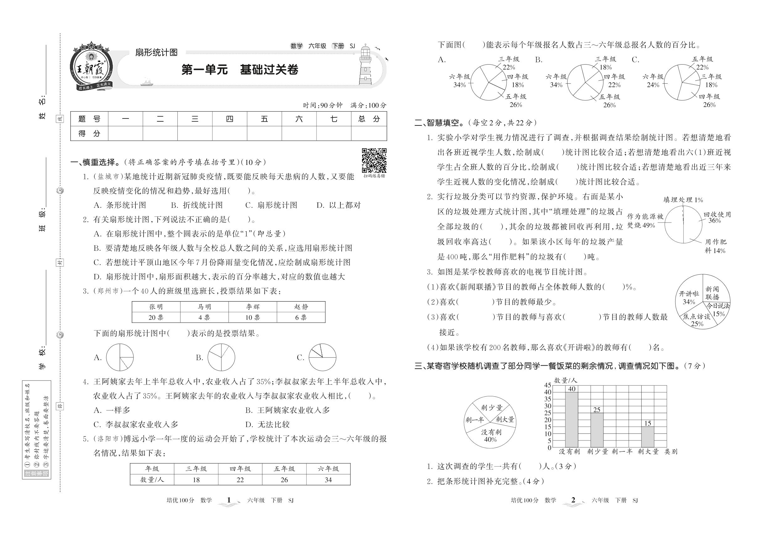 2022下册六年级数学苏教版 第一单元 基础过关卷