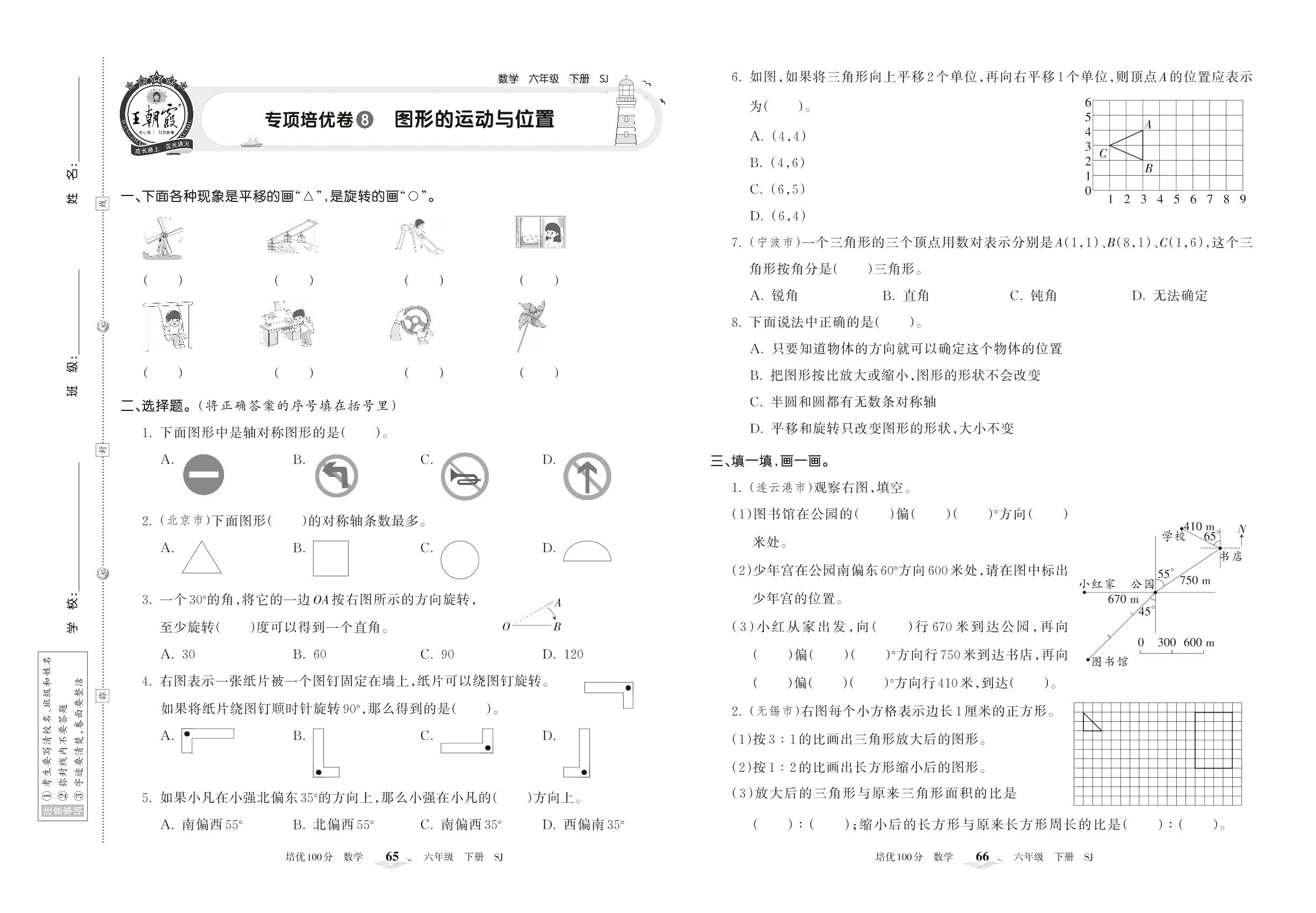 2022下册六年级数学苏教版 专项培优卷8 图形的运动与位置