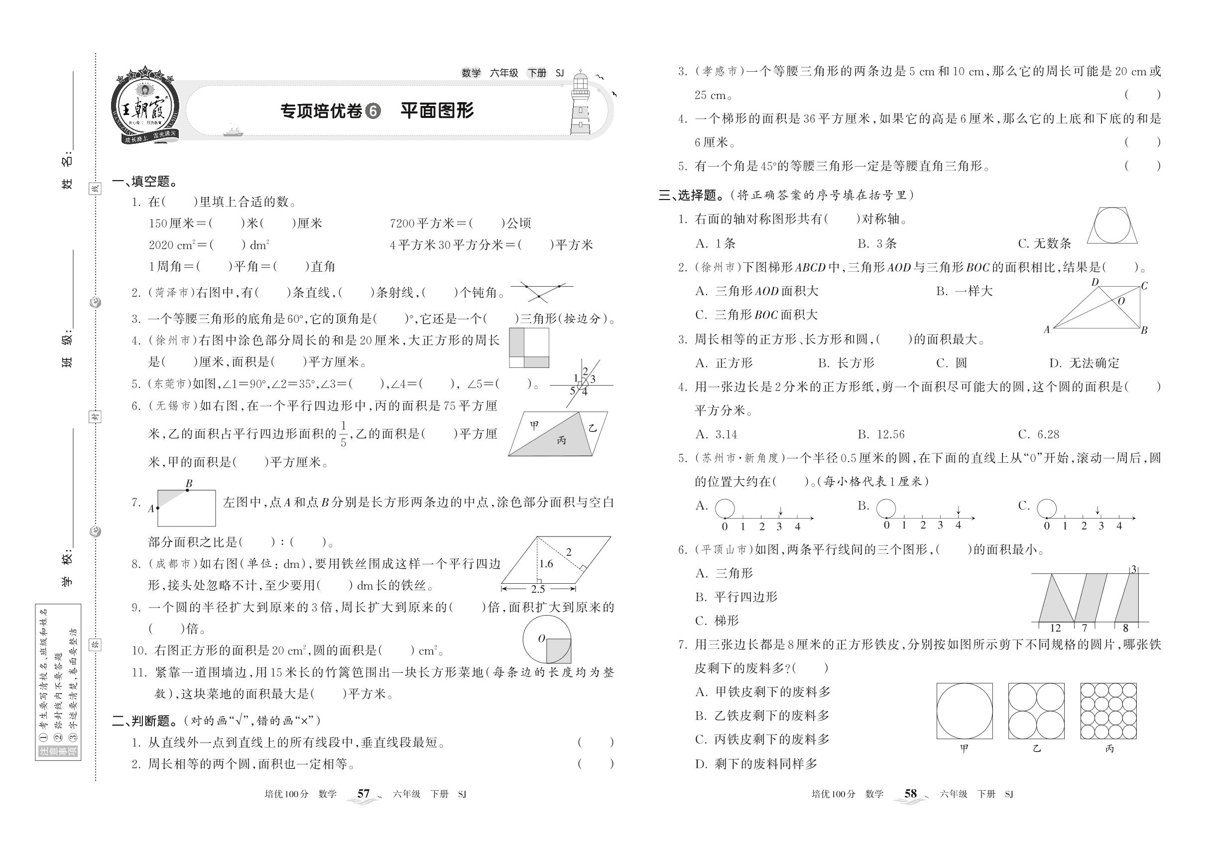 2022下册六年级数学苏教版 专项培优卷6 平面图形