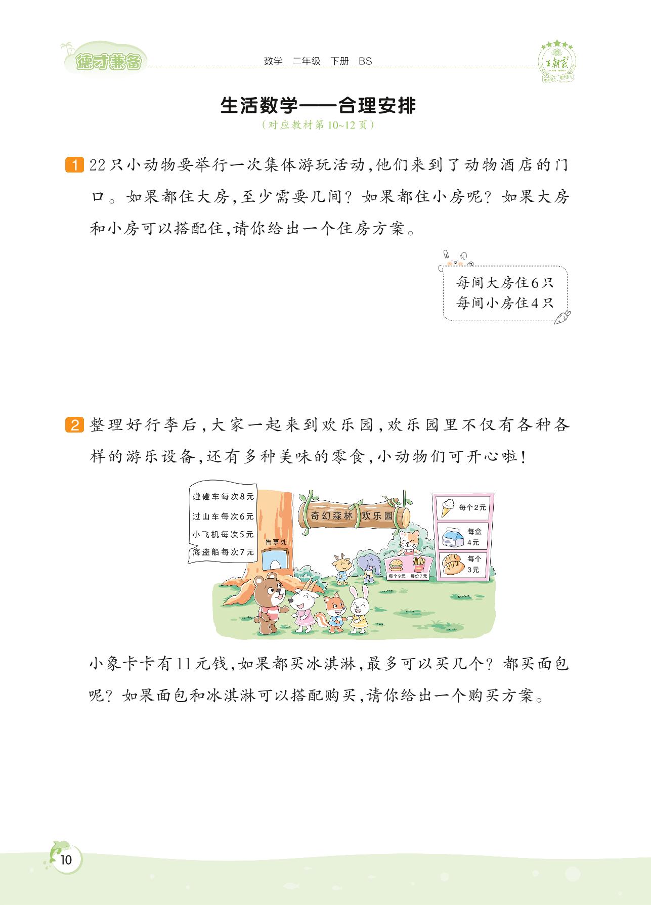 2022下册二年级数学北师版 第一单元 除法——生活数学 合理安排