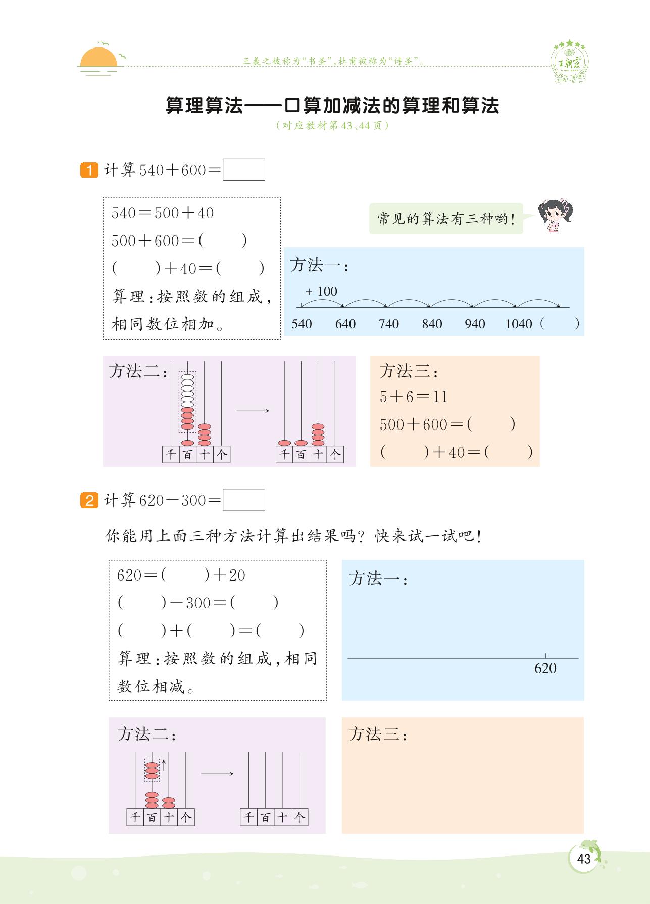 2022下册二年级数学北师版 第五单元 加与减——算理算法 口算加减法的算理和算法