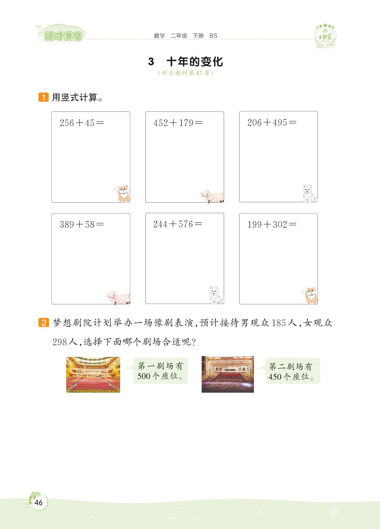 2022下册二年级数学北师版 第五单元 加与减——3 十年的变化
