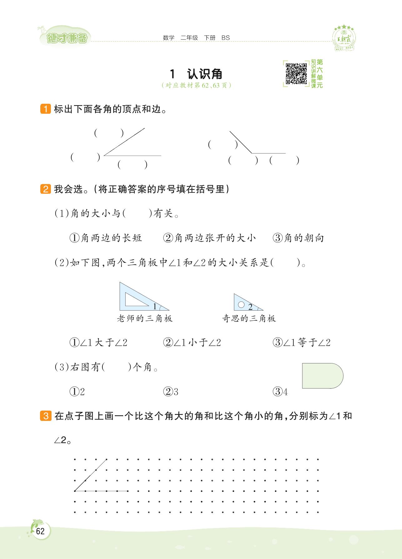 2022下册二年级数学北师版 第六单元 认识图形——1 认识角