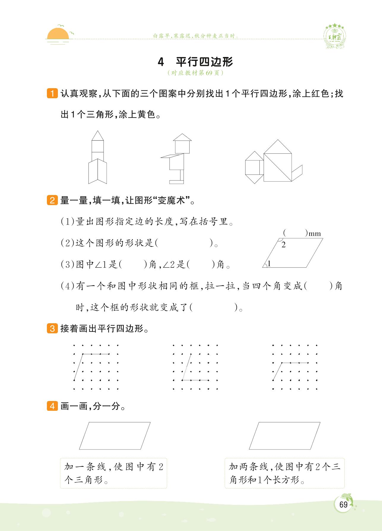 2022下册二年级数学北师版 第六单元 认识图形——4 平行四边形