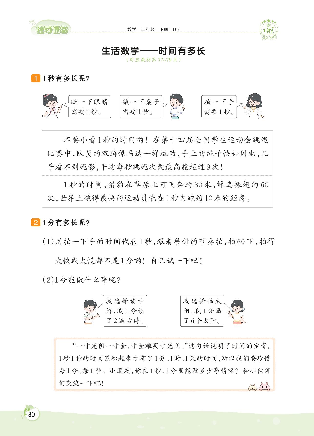 2022下册二年级数学北师版 第七单元 时、分、秒——生活数学 时间有多长