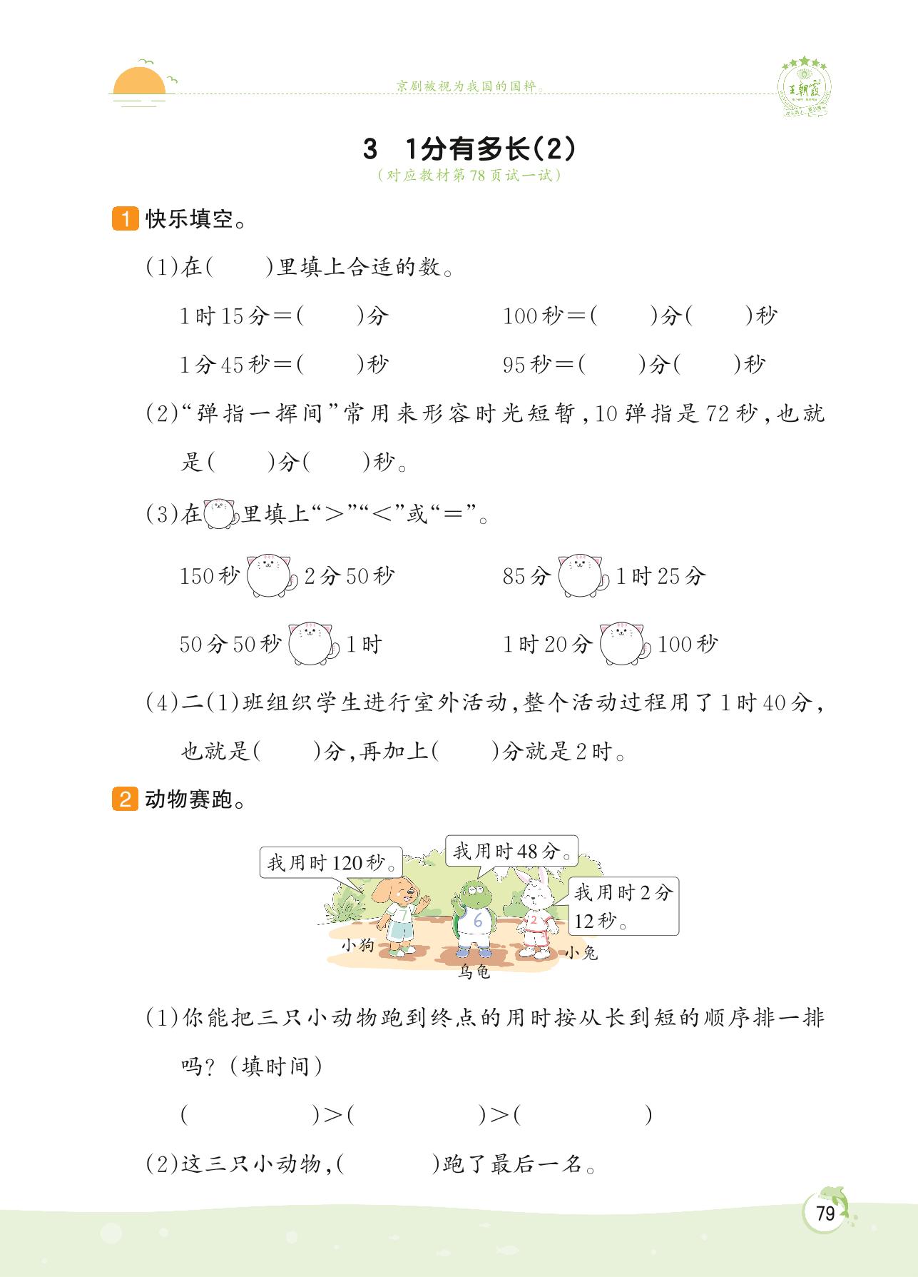 2022下册二年级数学北师版 第七单元 时、分、秒——3 1分有多长(2)