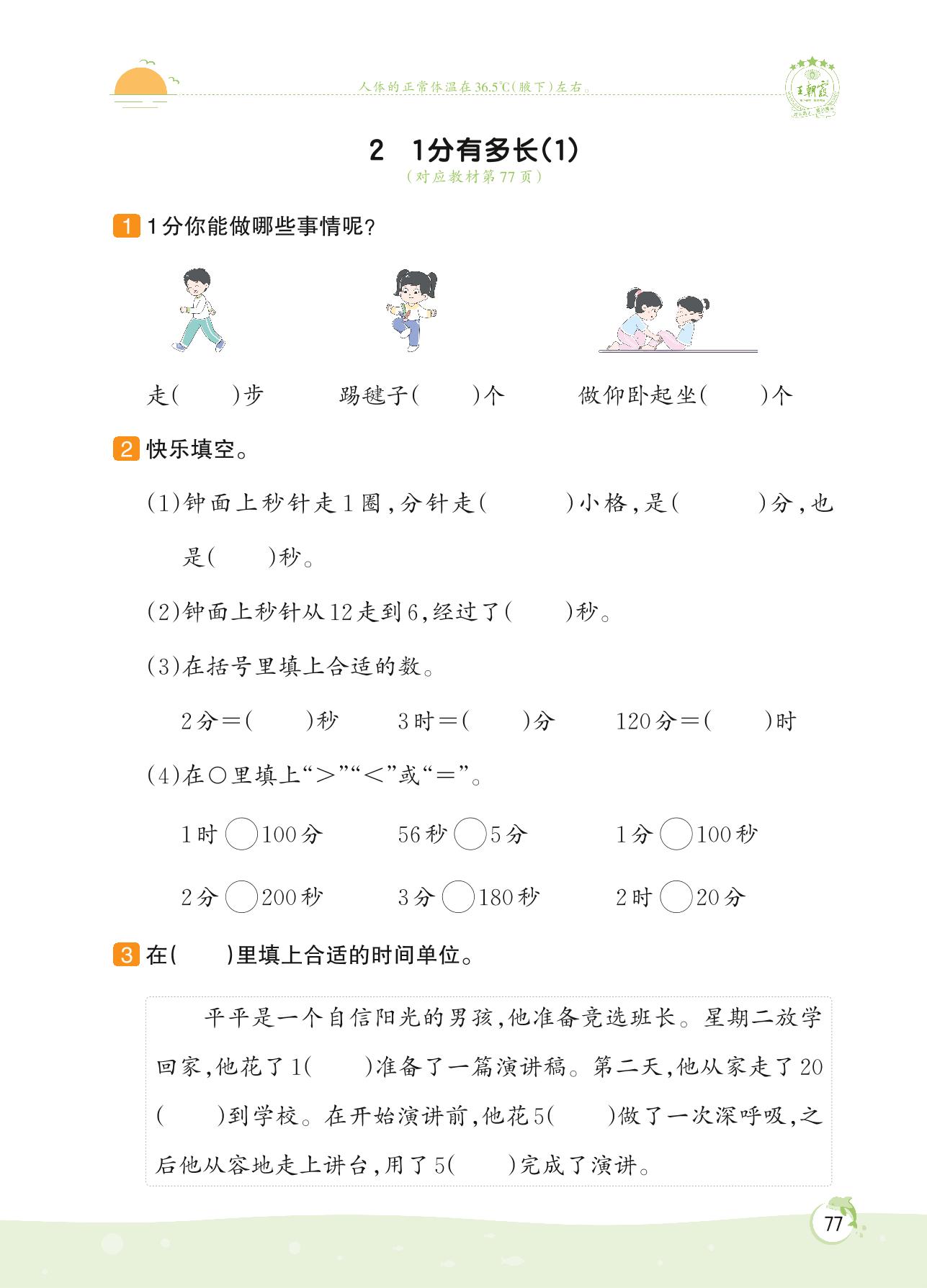 2022下册二年级数学北师版 第七单元 时、分、秒——2 1分有多长(1)