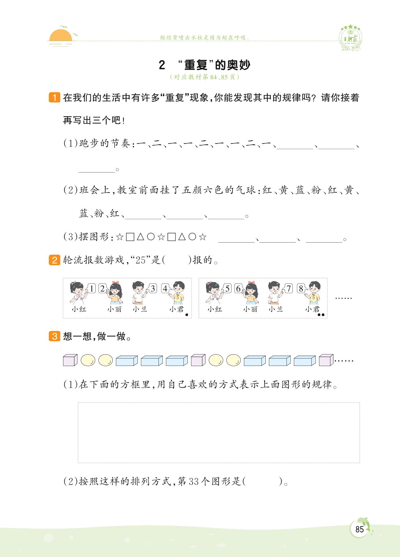 2022下册二年级数学北师版 数学好玩——2 “重复”的奥妙