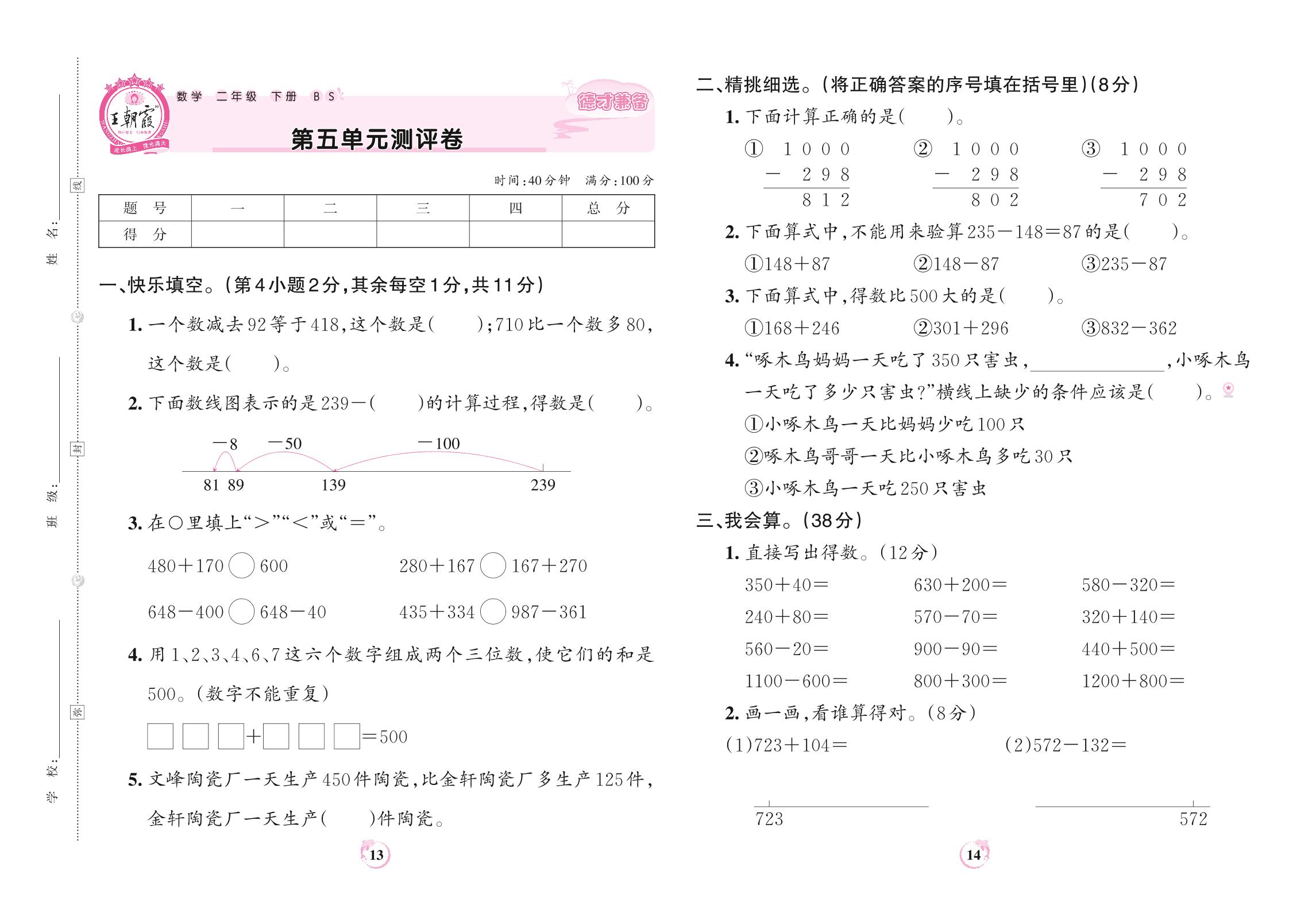 2022下册二年级数学北师版 第五单元测评卷