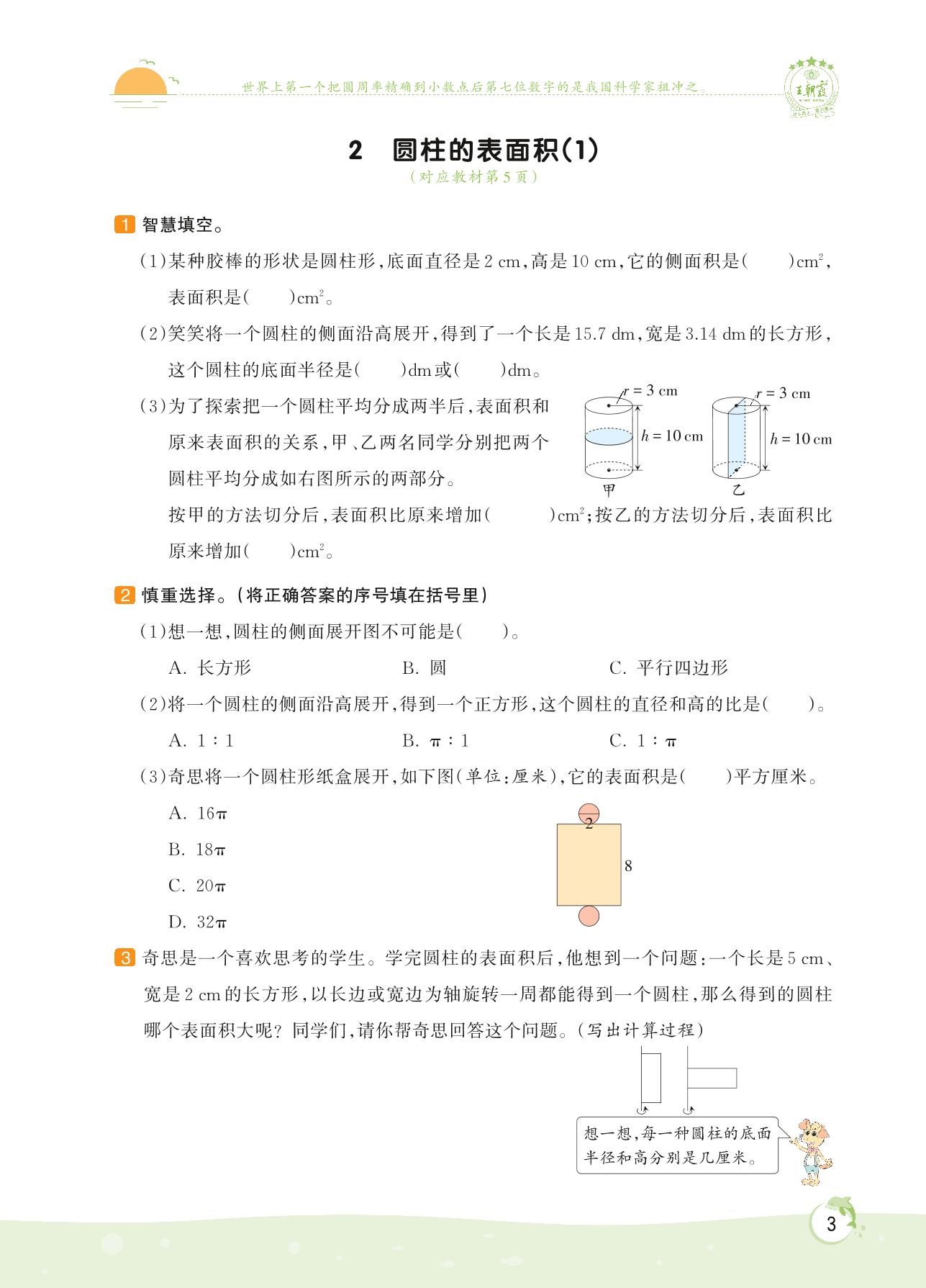 2022下册六年级数学北师版 第一单元 圆柱与圆锥——2 圆柱的表面积(1)