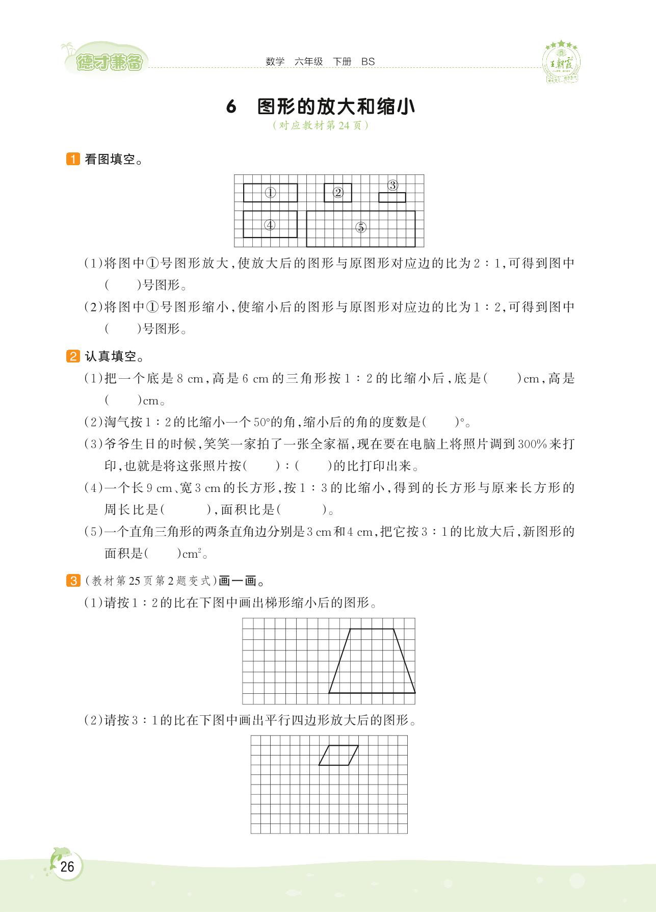 2022下册六年级数学北师版 第二单元 比例——6 图形的放大和缩小