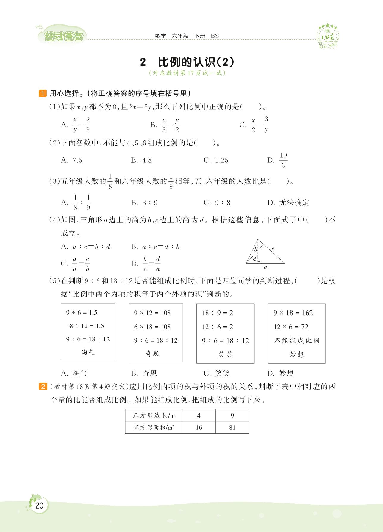 2022下册六年级数学北师版 第二单元 比例——2 比例的认识(2)