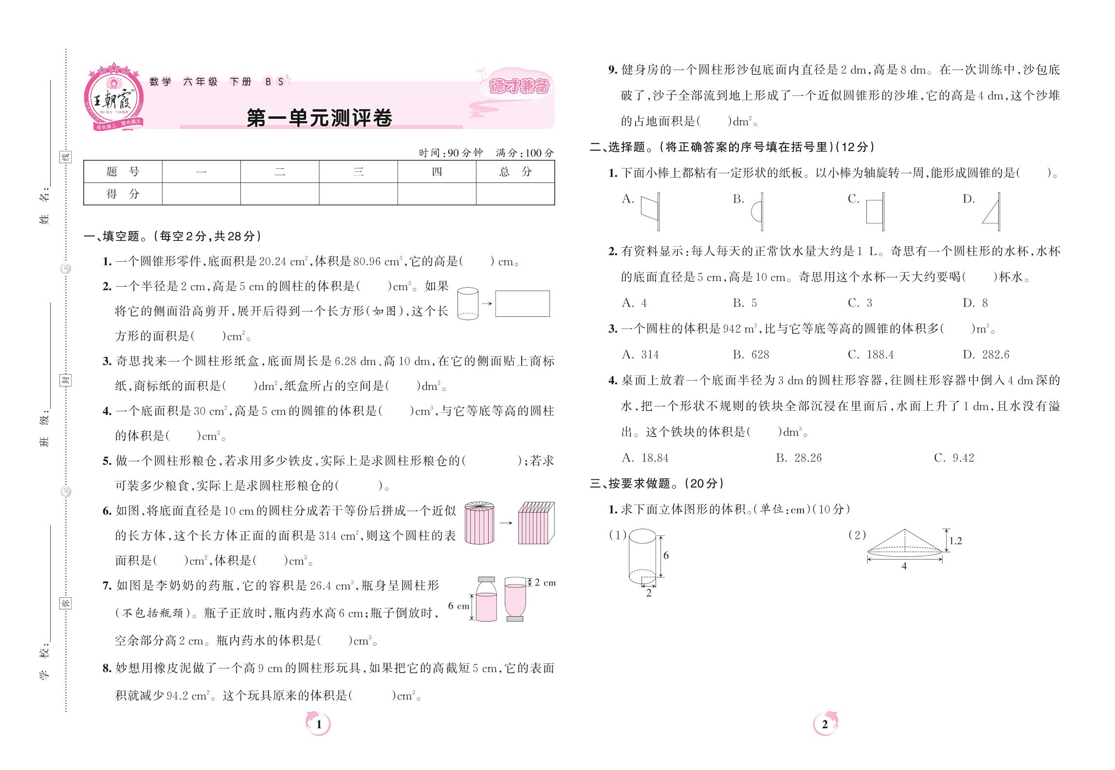 六年级数学北师版下册单元卷
