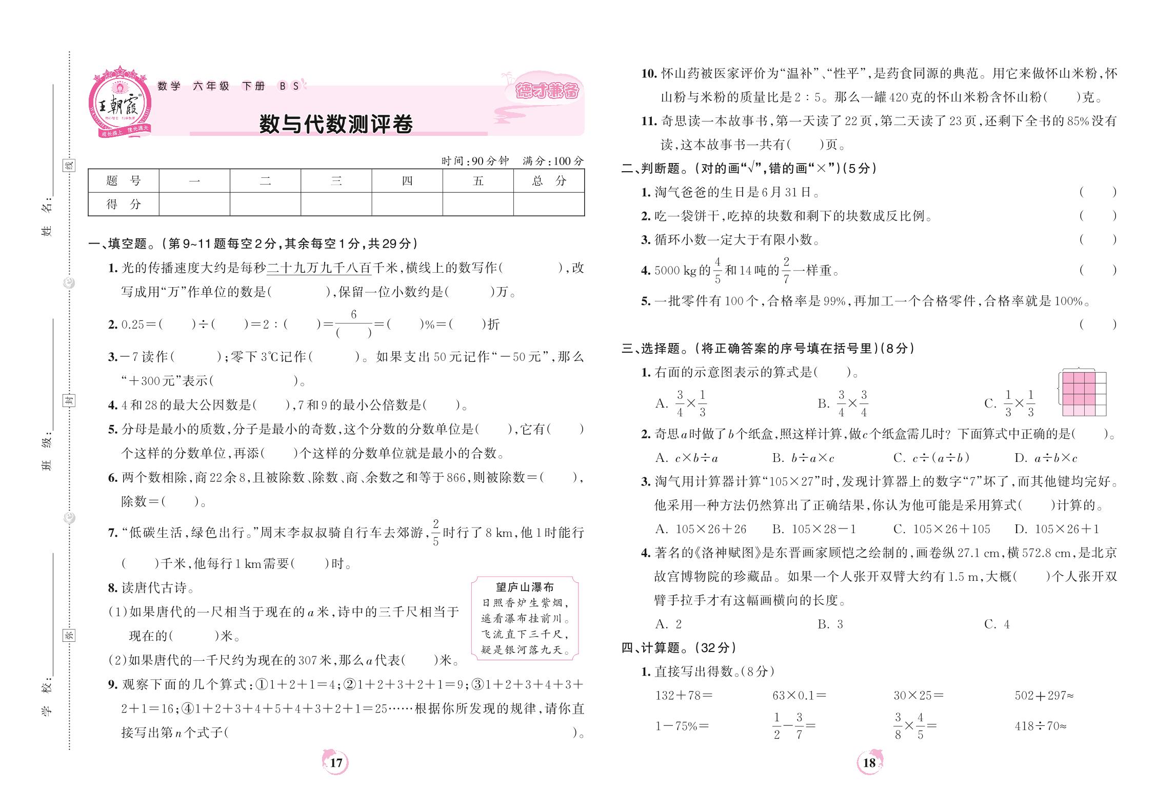 2022下册六年级数学北师版 数与代数测评卷