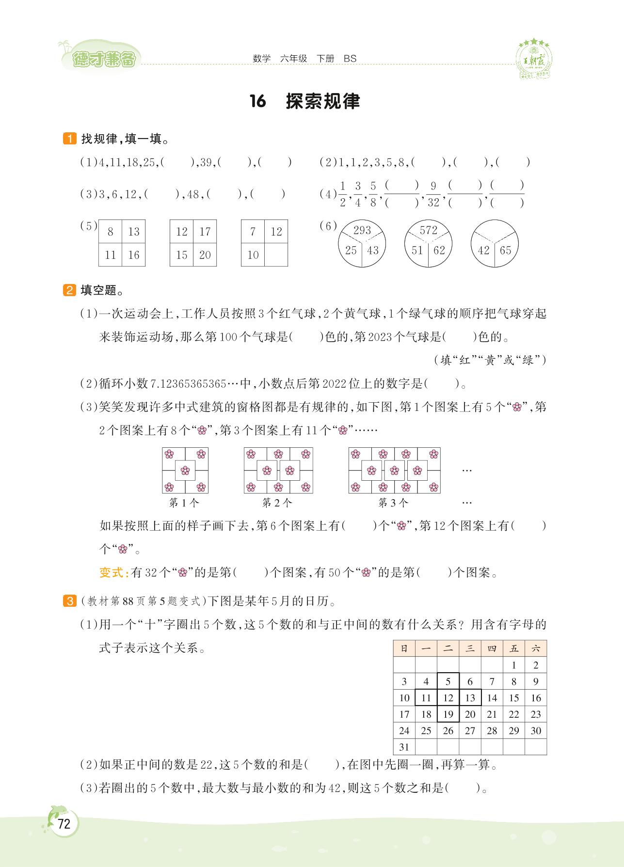 2022下册六年级数学北师版 总复习 数与代数——16 探索规律