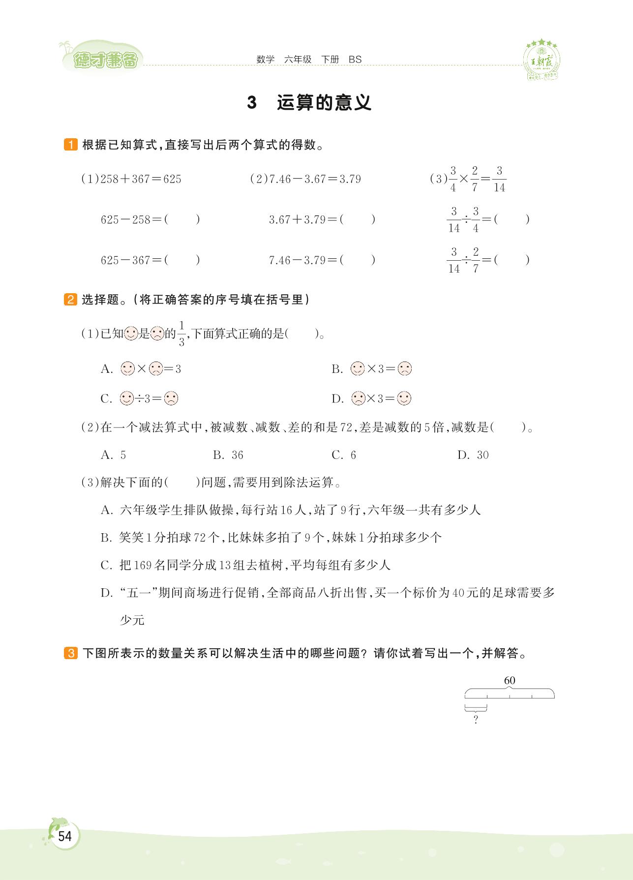 2022下册六年级数学北师版 总复习 数与代数——3 运算的意义