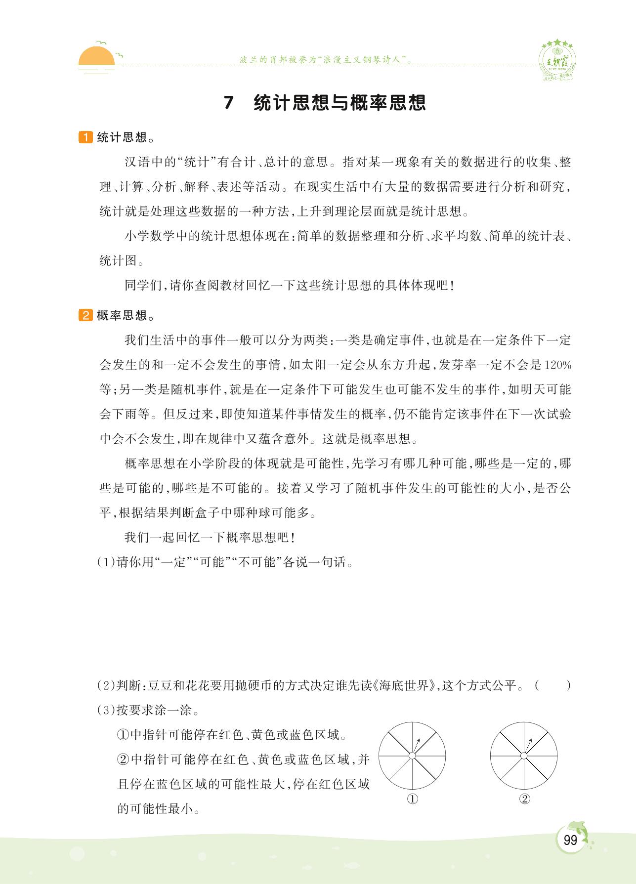 2022下册六年级数学北师版 总复习 统计与概率——7 统计思想与概率思想
