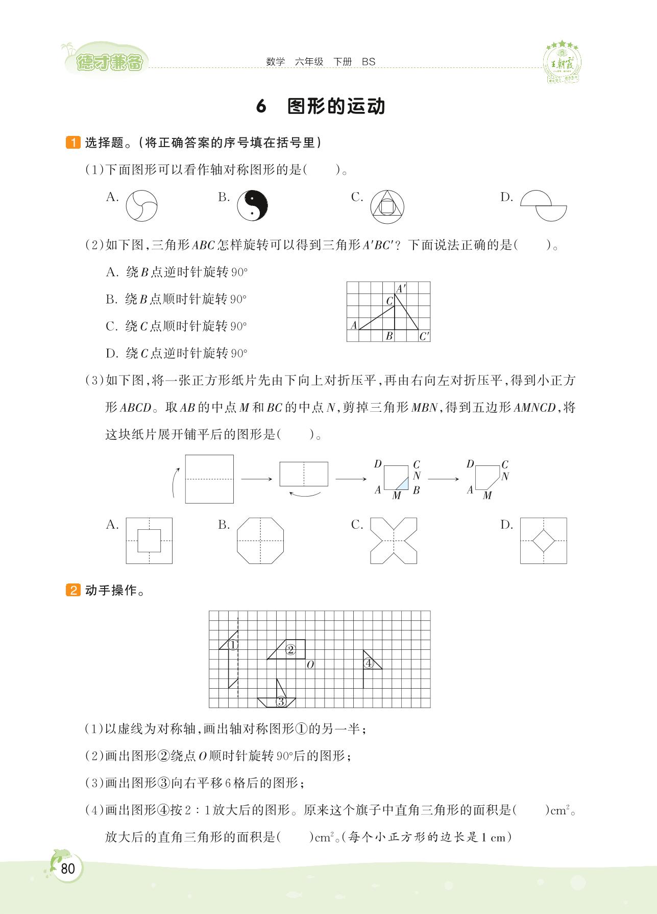 2022下册六年级数学北师版 总复习 图形与几何——6 图形的运动