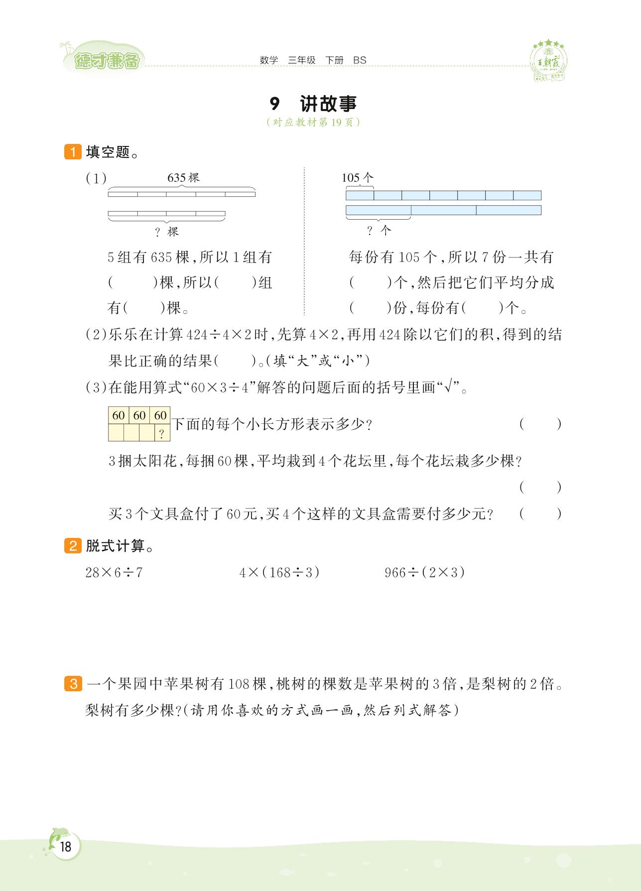 2022下册三年级数学北师版 第一单元 除法——9 讲故事