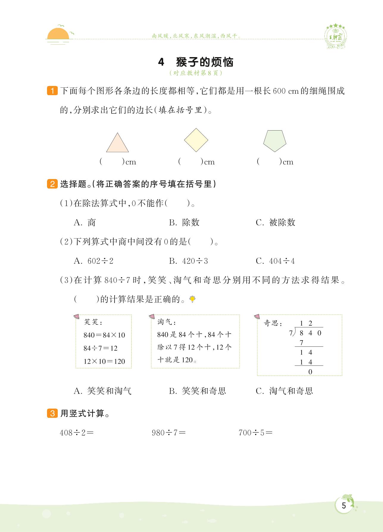 2022下册三年级数学北师版 第一单元 除法——4 猴子的烦恼