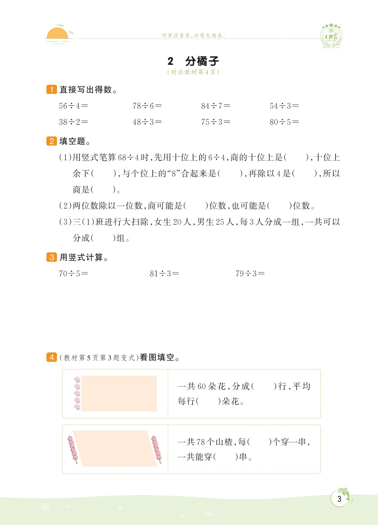 2022下册三年级数学北师版 第一单元 除法——2 分橘子