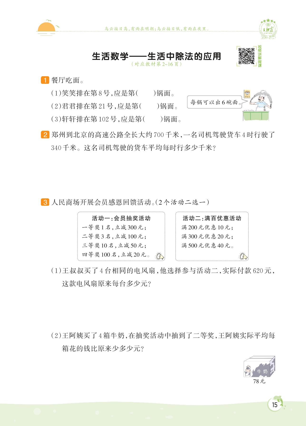 2022下册三年级数学北师版 第一单元 除法——生活数学 生活中除法的应用