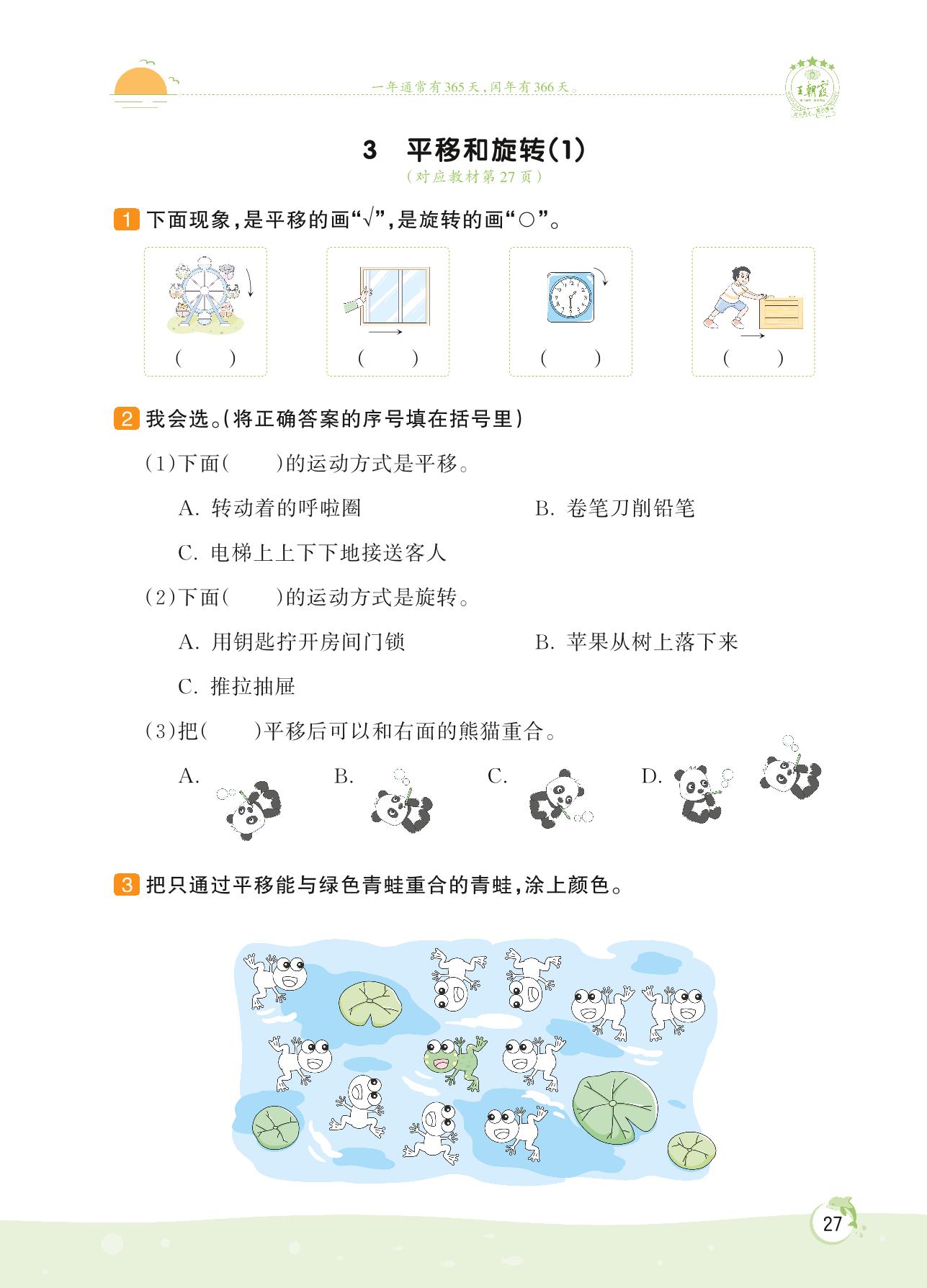 2022下册三年级数学北师版 第二单元 图形的运动——3 平移和旋转(1)