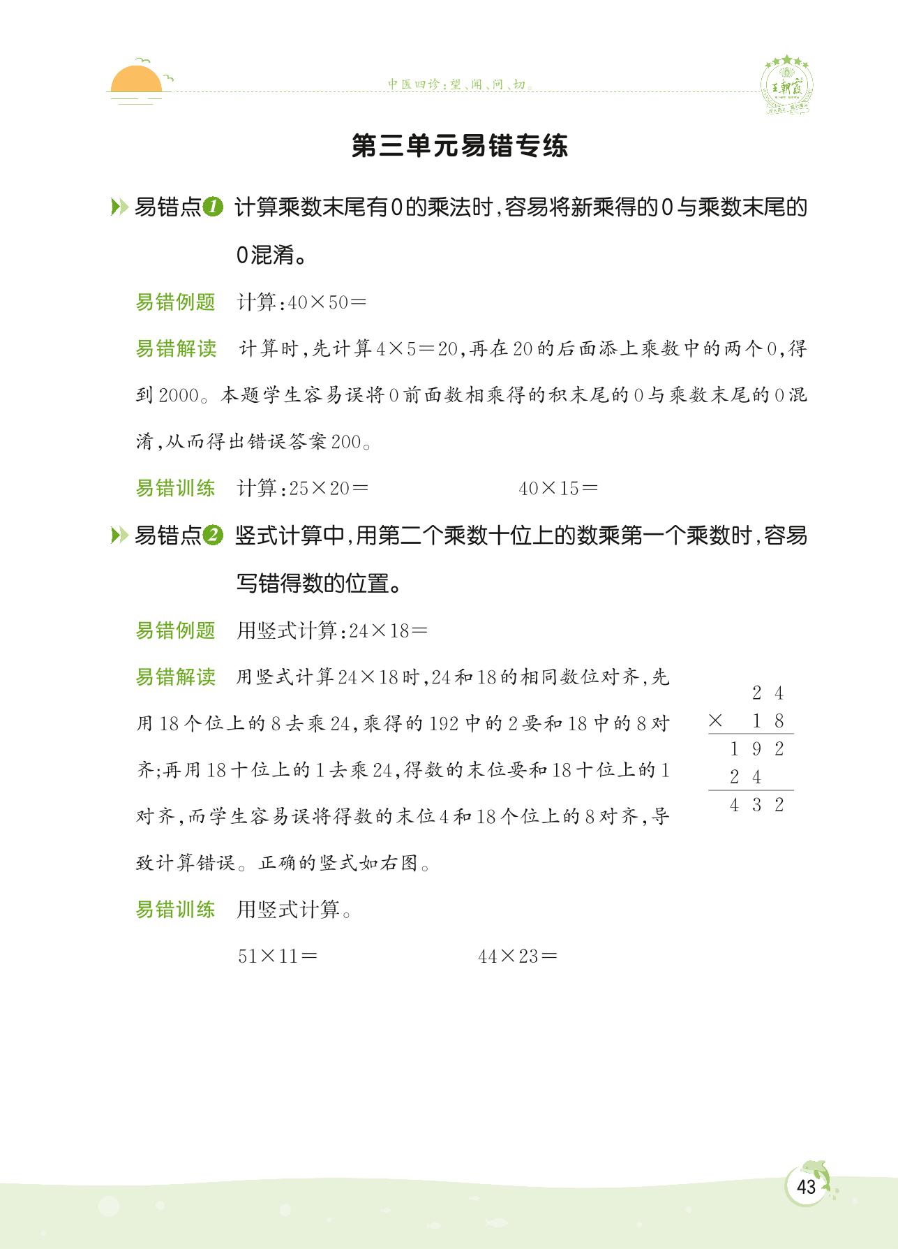 2022下册三年级数学北师版 第三单元 乘法——第三单元易错专练