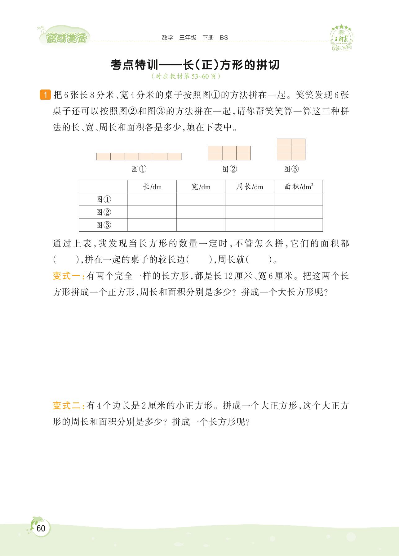 2022下册三年级数学北师版 第五单元 面积——考点特训 长(正)方形的拼切