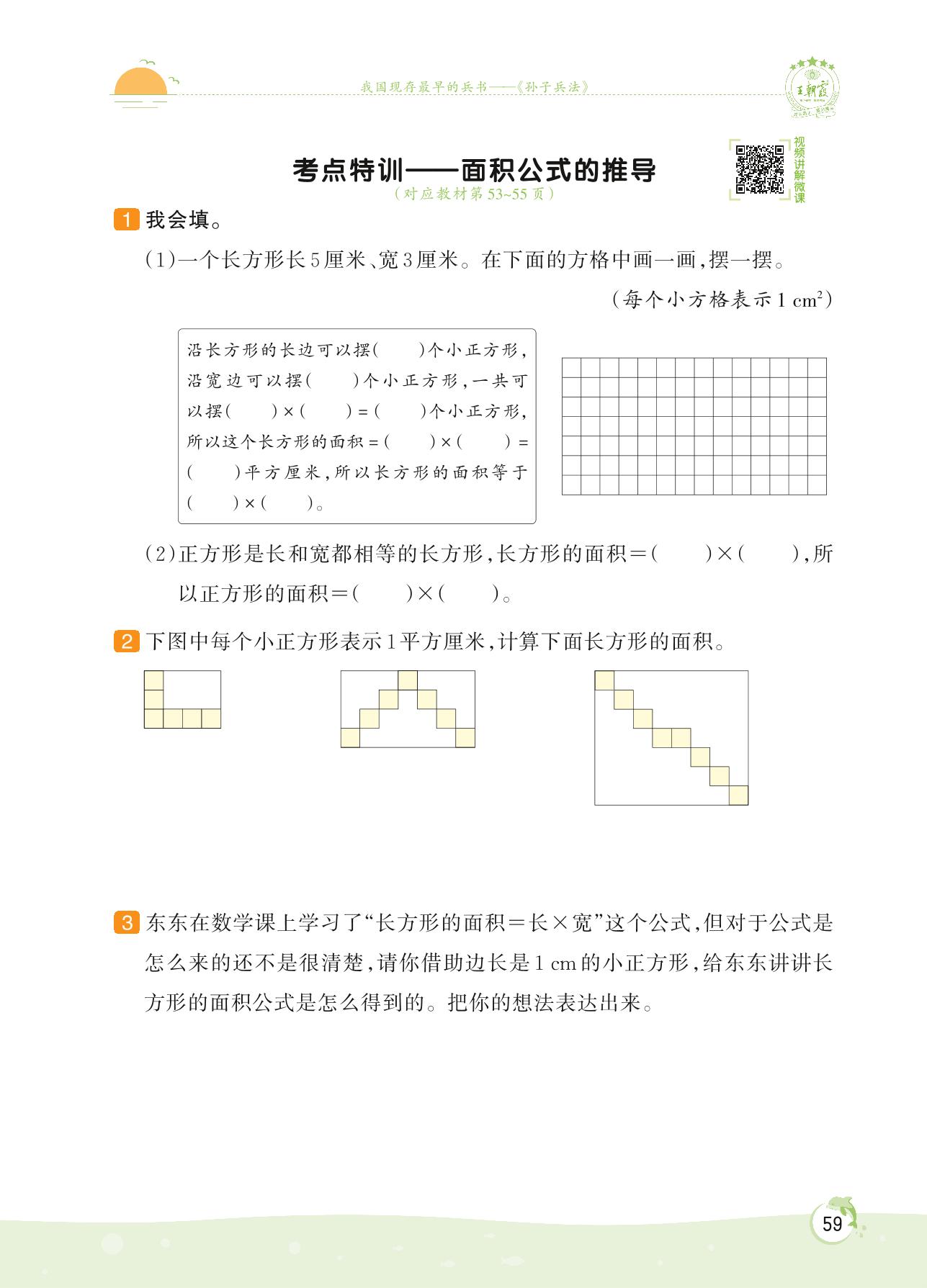 2022下册三年级数学北师版 第五单元 面积——考点特训 面积公式的推导