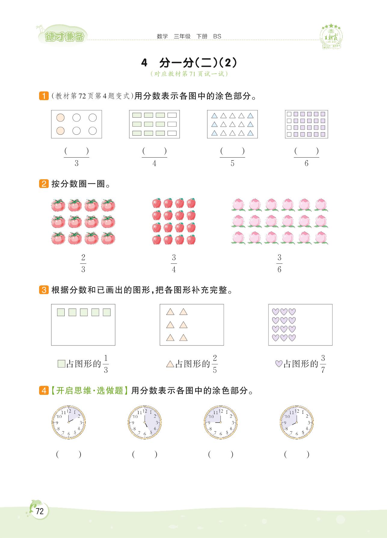 2022下册三年级数学北师版 第六单元 认识分数——4 分一分(二)(2)