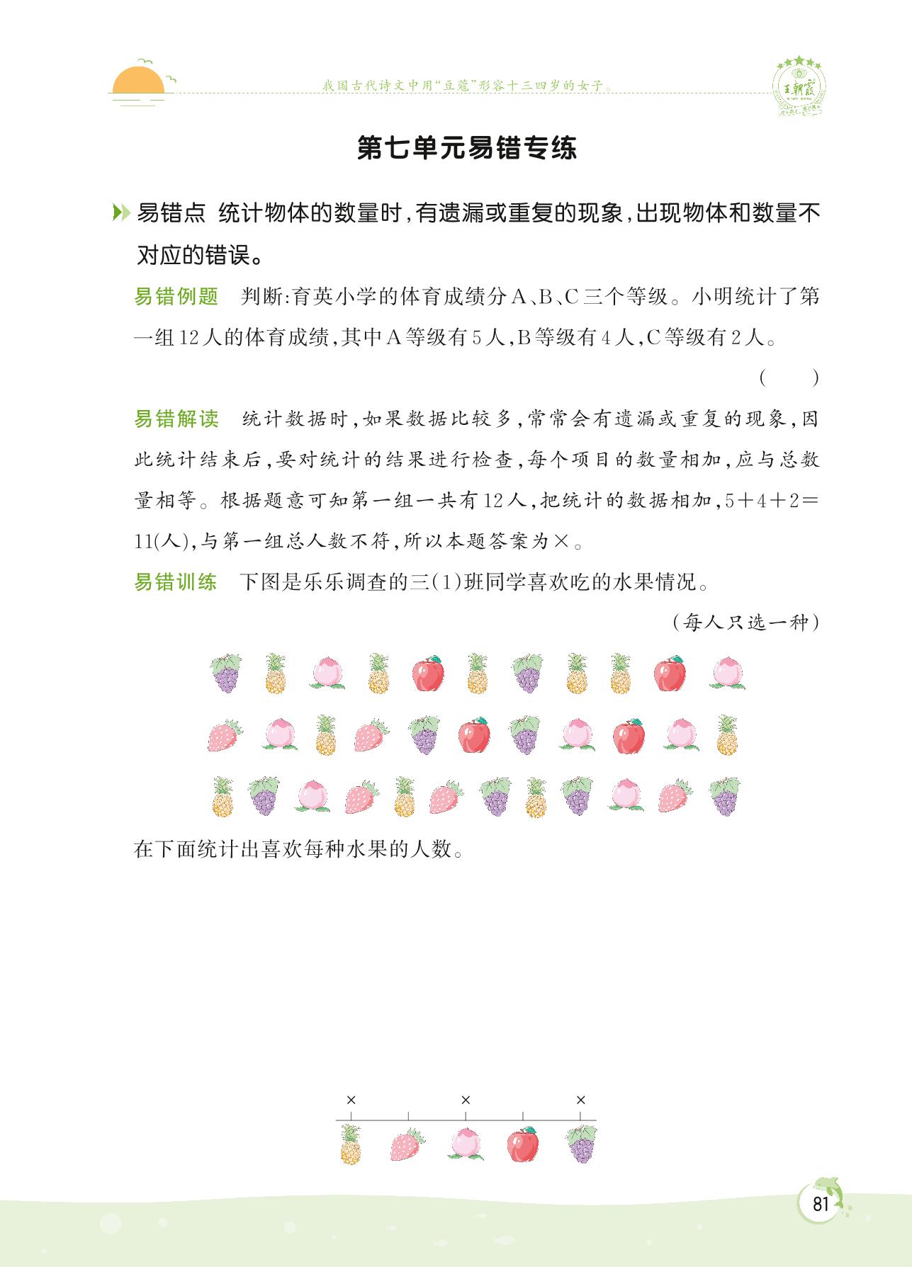 2022下册三年级数学北师版 第七单元 数据的整理和表示——第七单元易错专练
