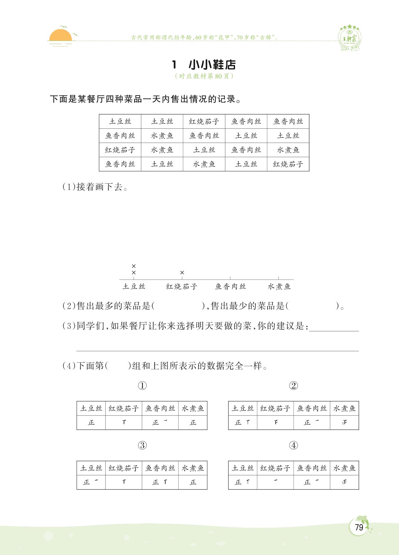 2022下册三年级数学北师版 第七单元 数据的整理和表示——1 小小鞋店