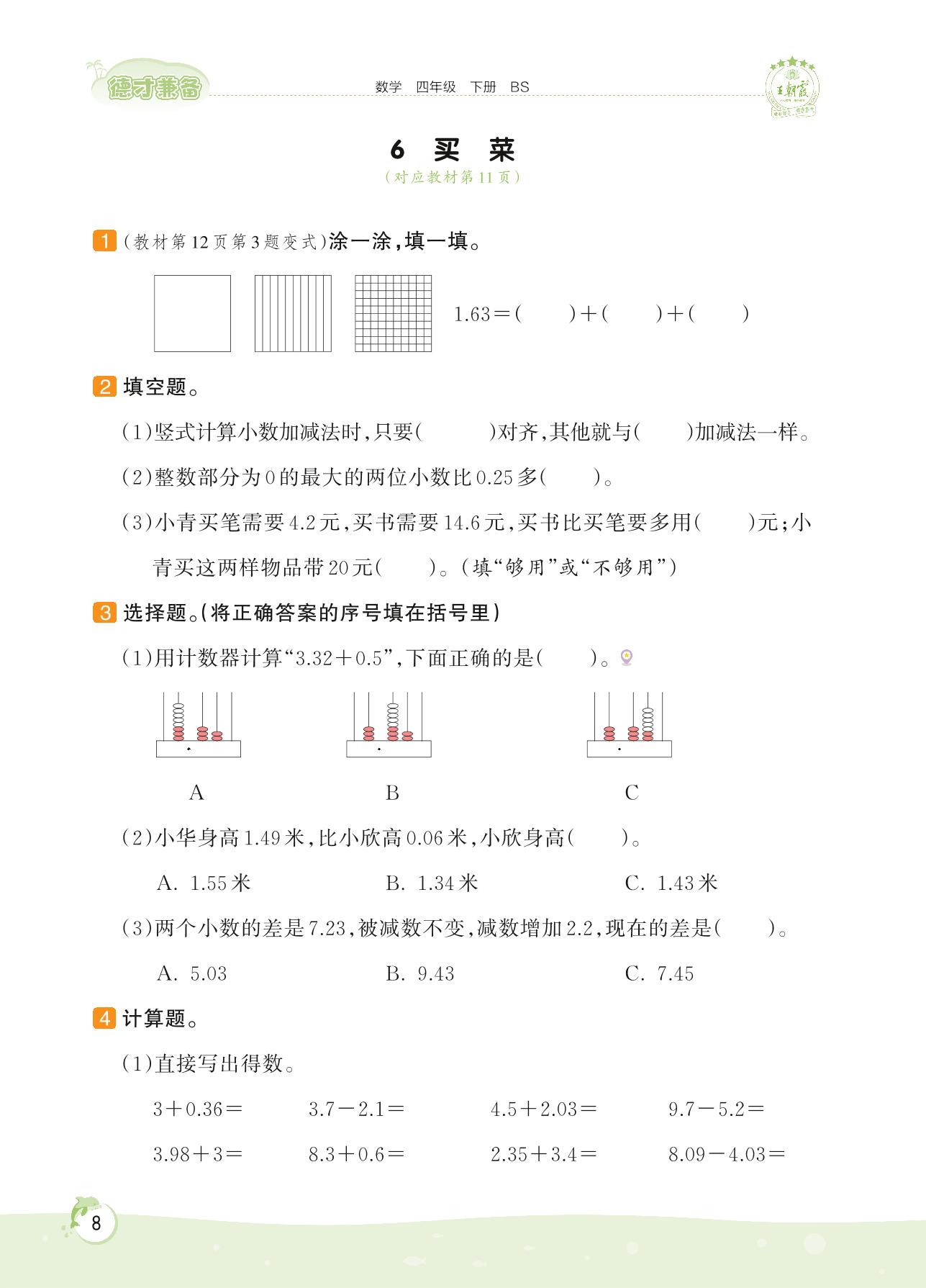 2022下册四年级数学北师版 第一单元 小数的意义和加减法——6 买菜