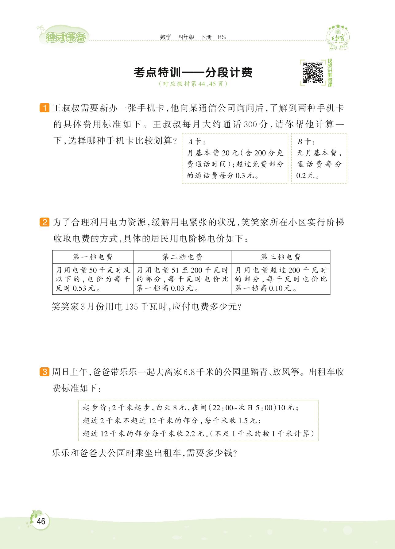 2022下册四年级数学北师版 第三单元 小数乘法——考点特训 分段计费