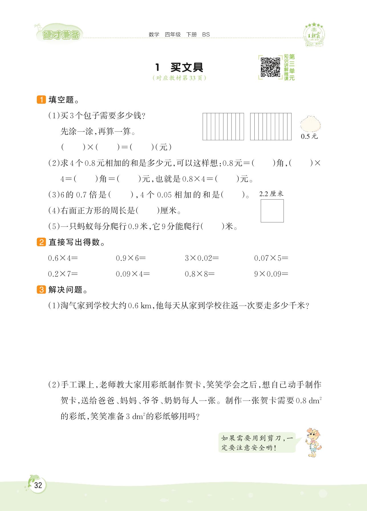 2022下册四年级数学北师版 第三单元 小数乘法——1 买文具