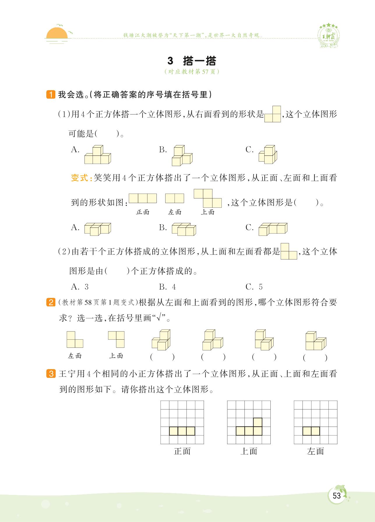2022下册四年级数学北师版 第四单元 观察物体——3 搭一搭