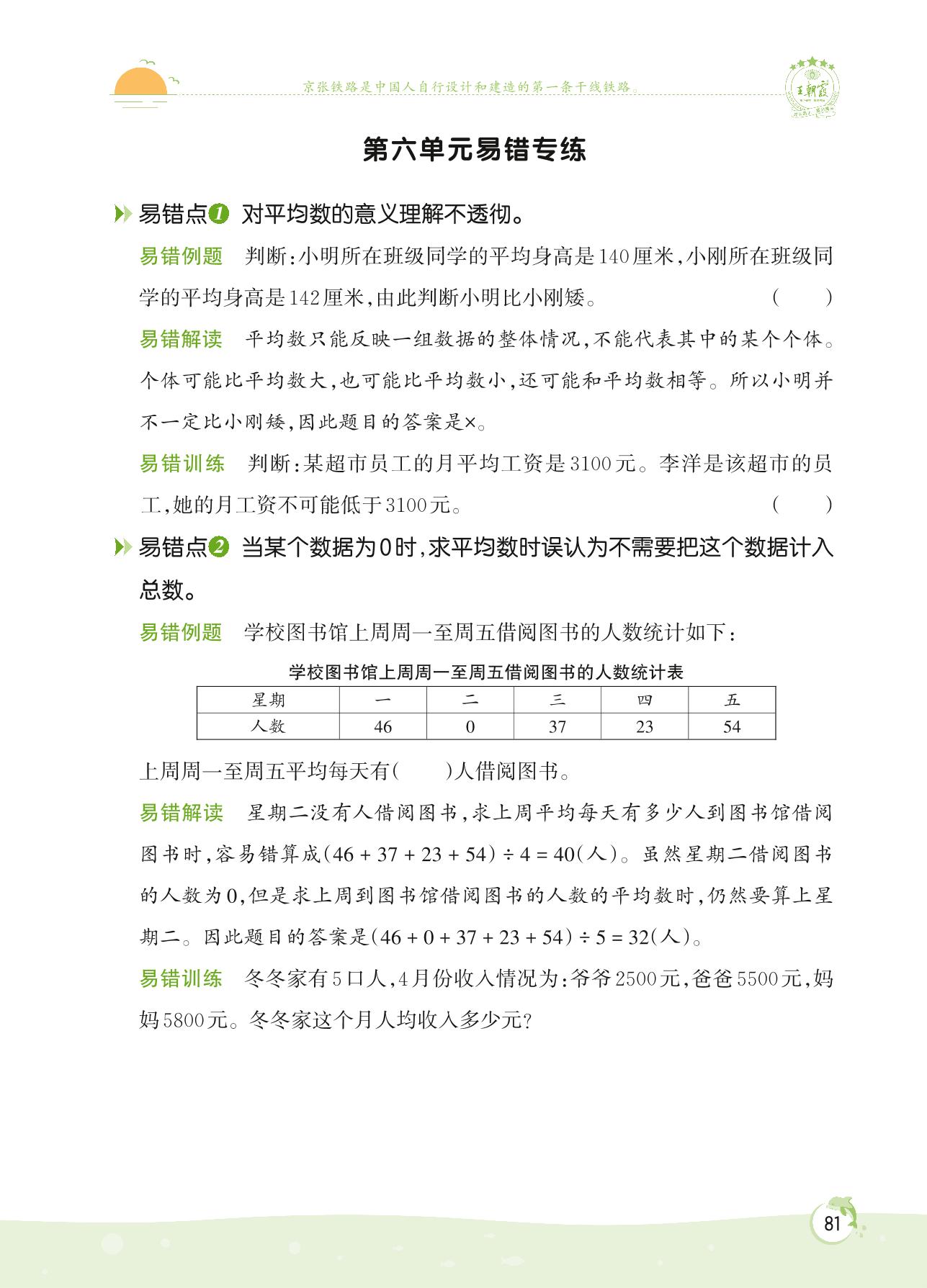 2022下册四年级数学北师版 第六单元 数据的表示和分析——第六单元易错专练