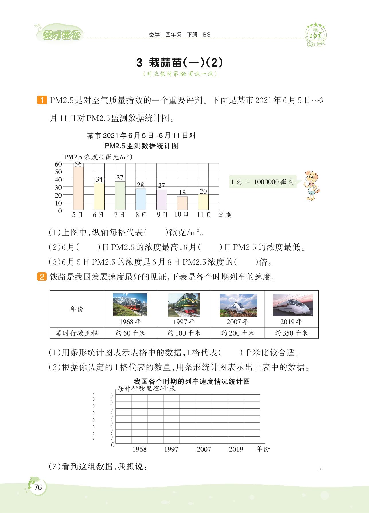2022下册四年级数学北师版 第六单元 数据的表示和分析——3 栽蒜苗(一)(2)