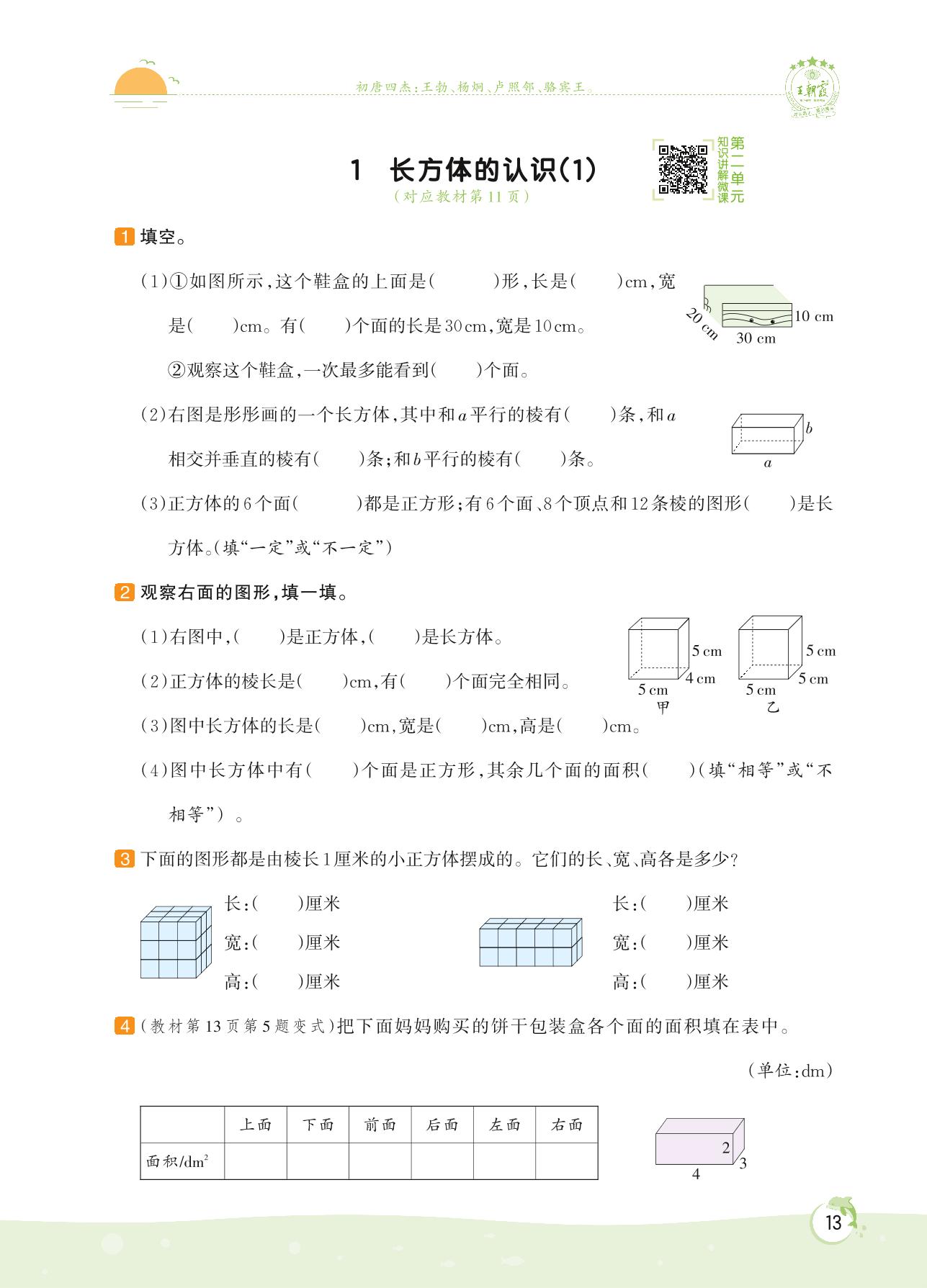 2022下册五年级数学北师版 第二单元 长方体(一)——1 长方体的认识(1)