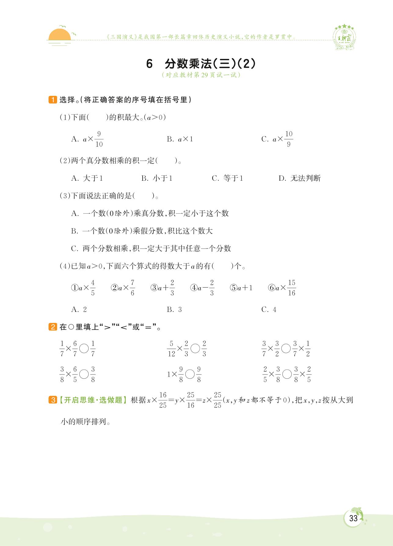2022下册五年级数学北师版 第三单元 分数乘法——6 分数乘法(三)(2)