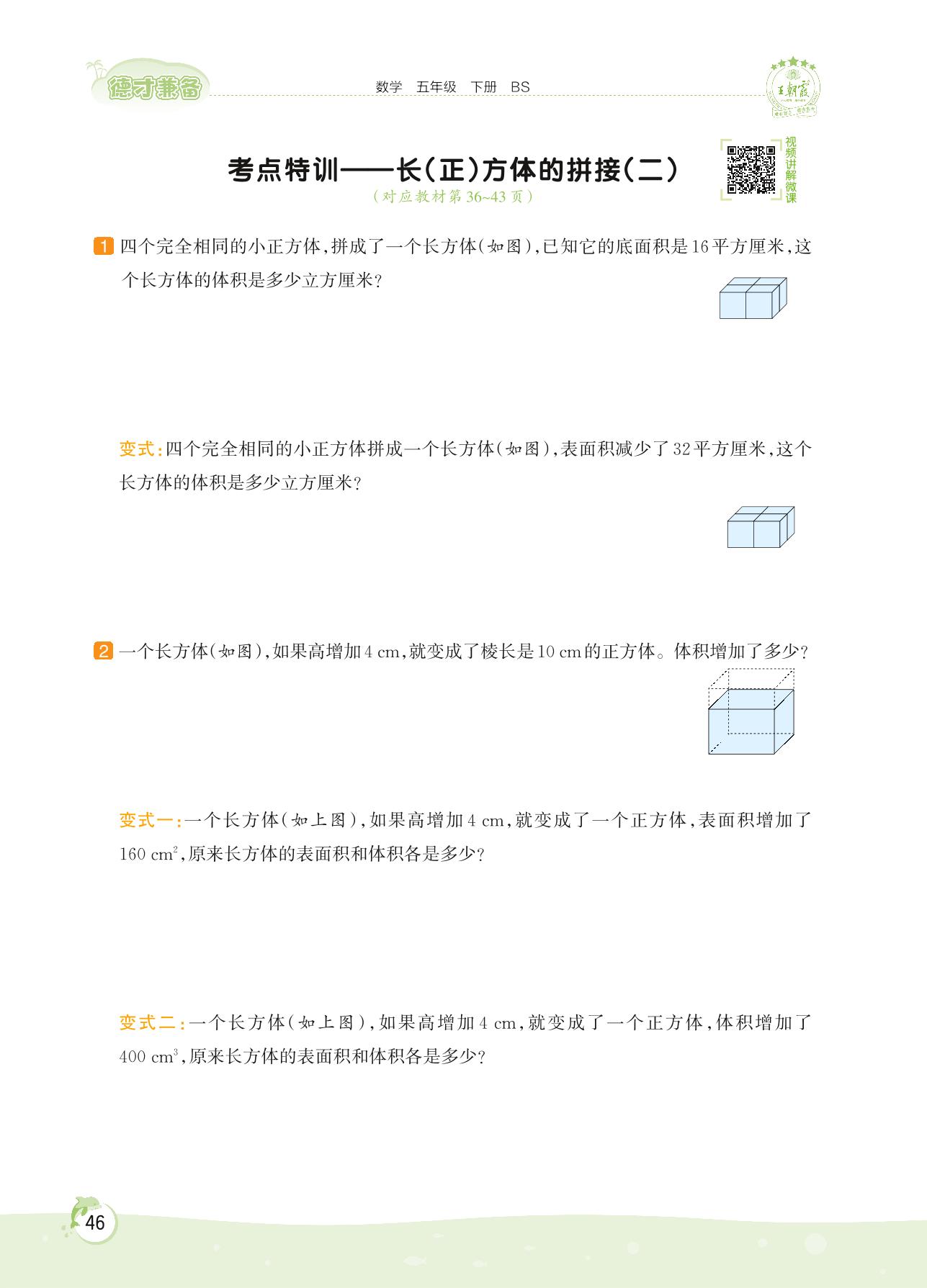 2022下册五年级数学北师版 第四单元 长方体(二)——考点特训 长(正)方体的拼接(二)