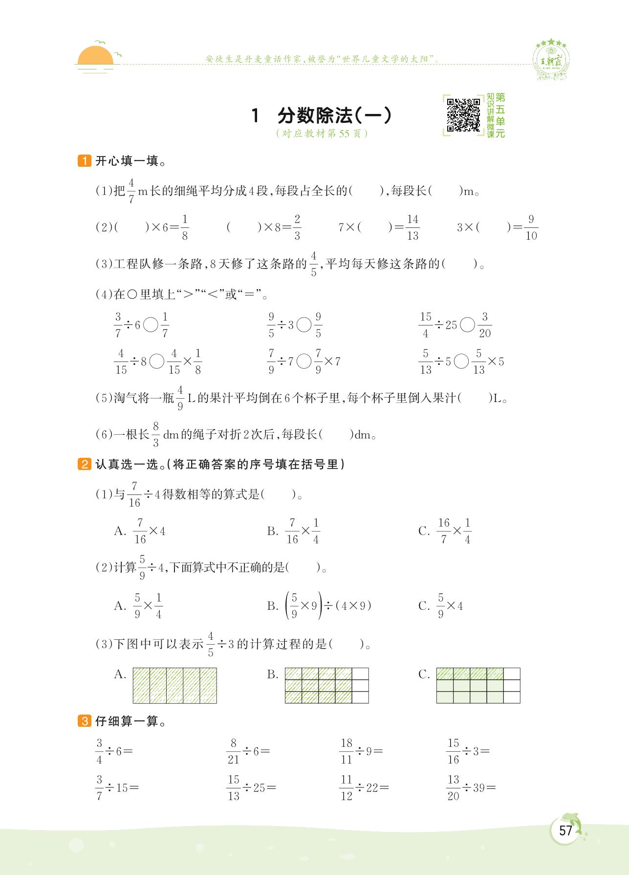 2022下册五年级数学北师版 第五单元 分数除法——1 分数除法(一)