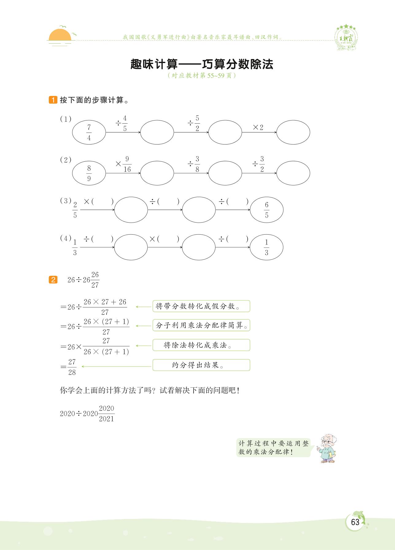 2022下册五年级数学北师版 第五单元 分数除法——趣味计算 巧算分数除法