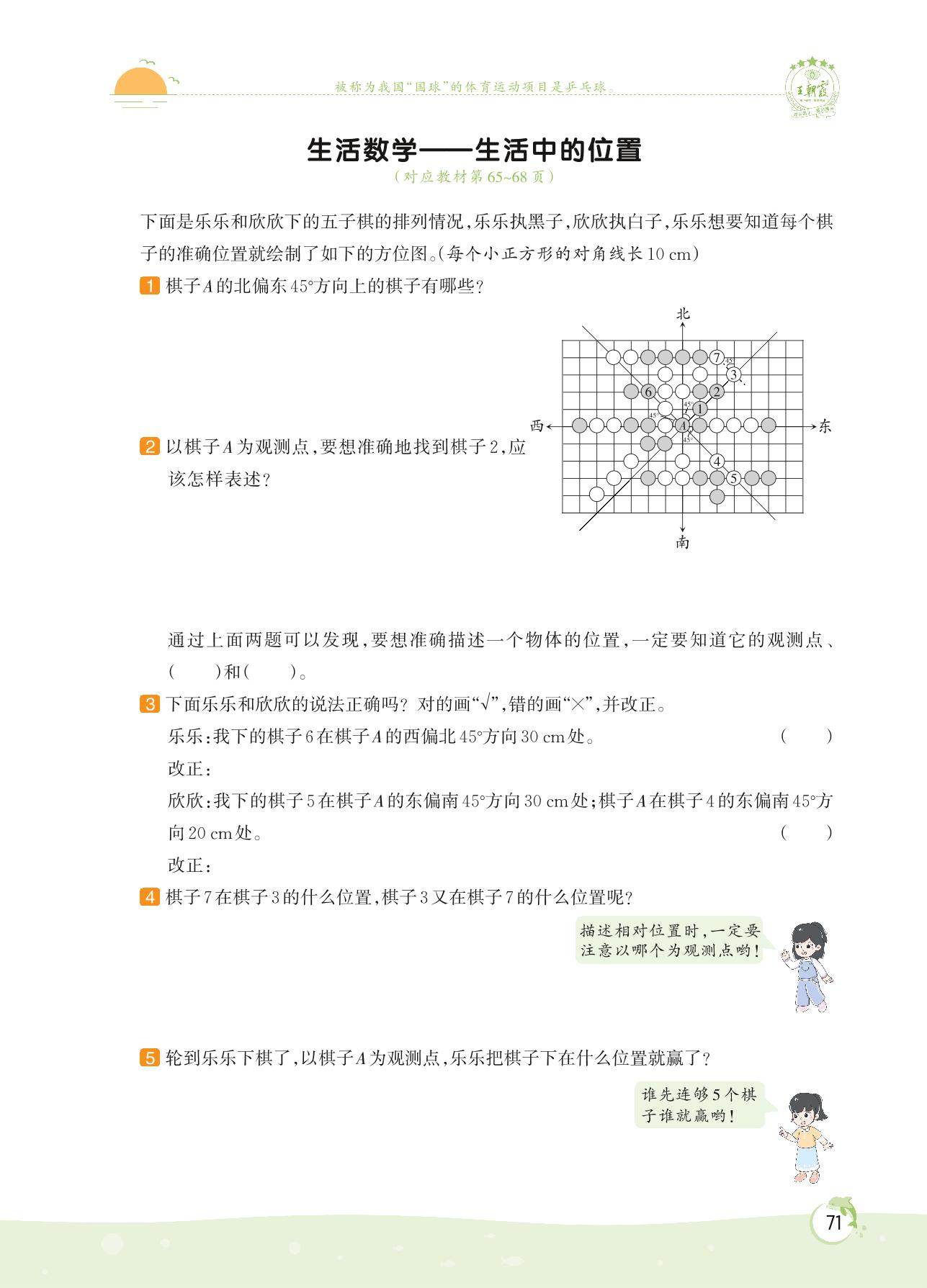 2022下册五年级数学北师版 第六单元 确定位置——生活数学 生活中的位置