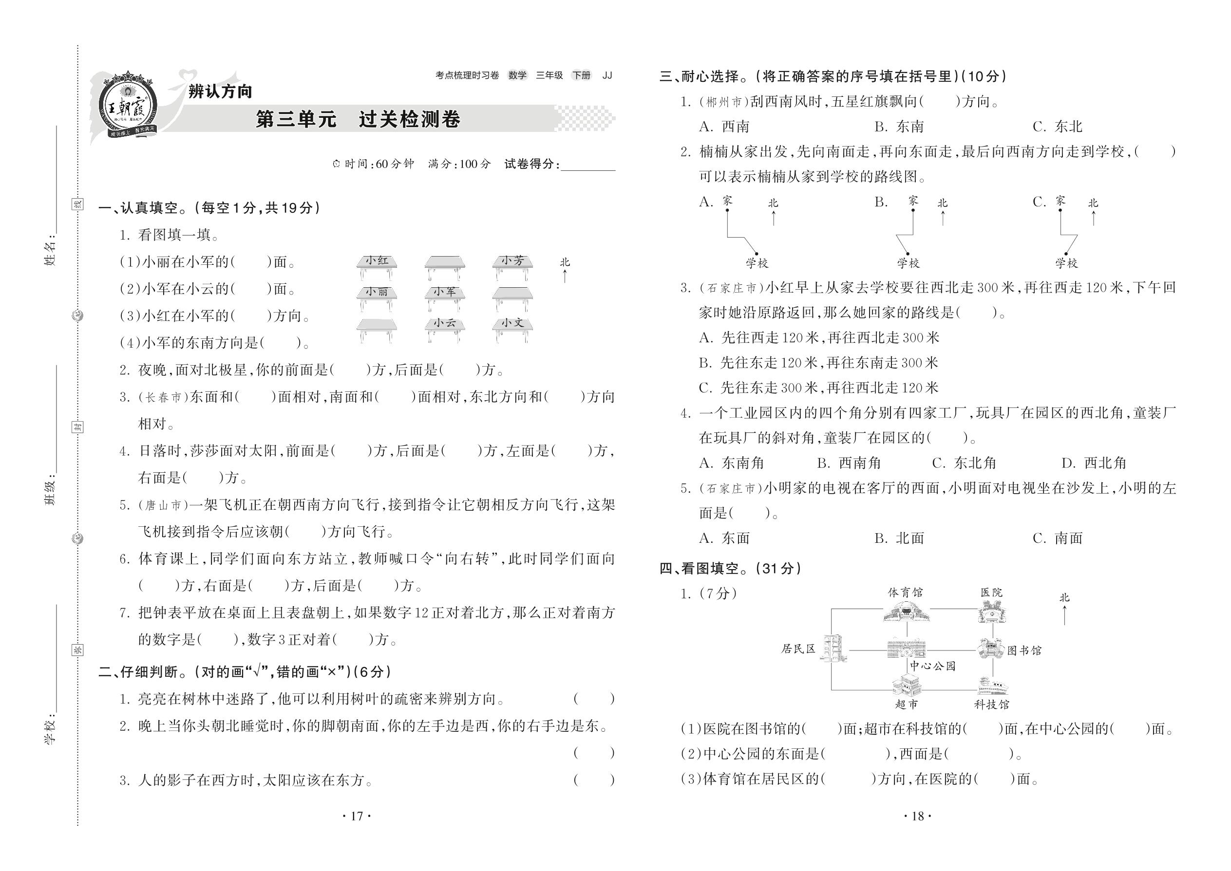 2022下册三年级数学冀教版 第三单元 过关检测卷