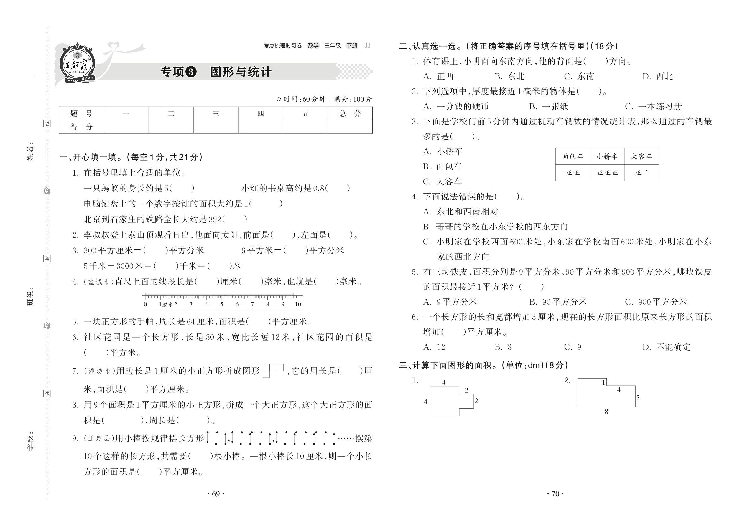 三年级数学冀教版下册专项卷