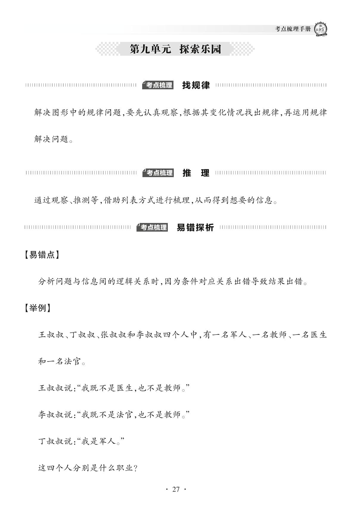 2022下册三年级数学冀教版 单元考点梳理——第九单元 探索乐园