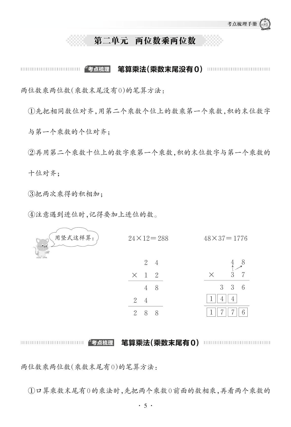 2022下册三年级数学冀教版 单元考点梳理——第二单元 两位数乘两位数